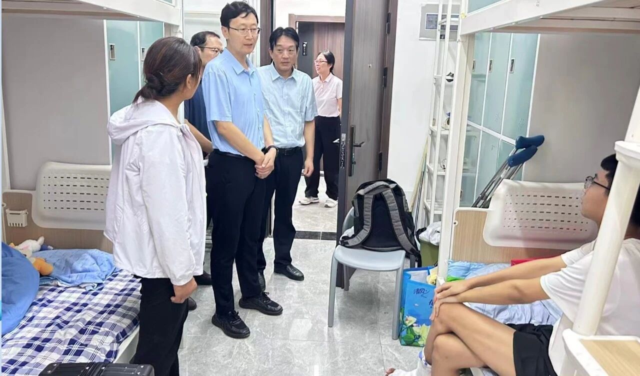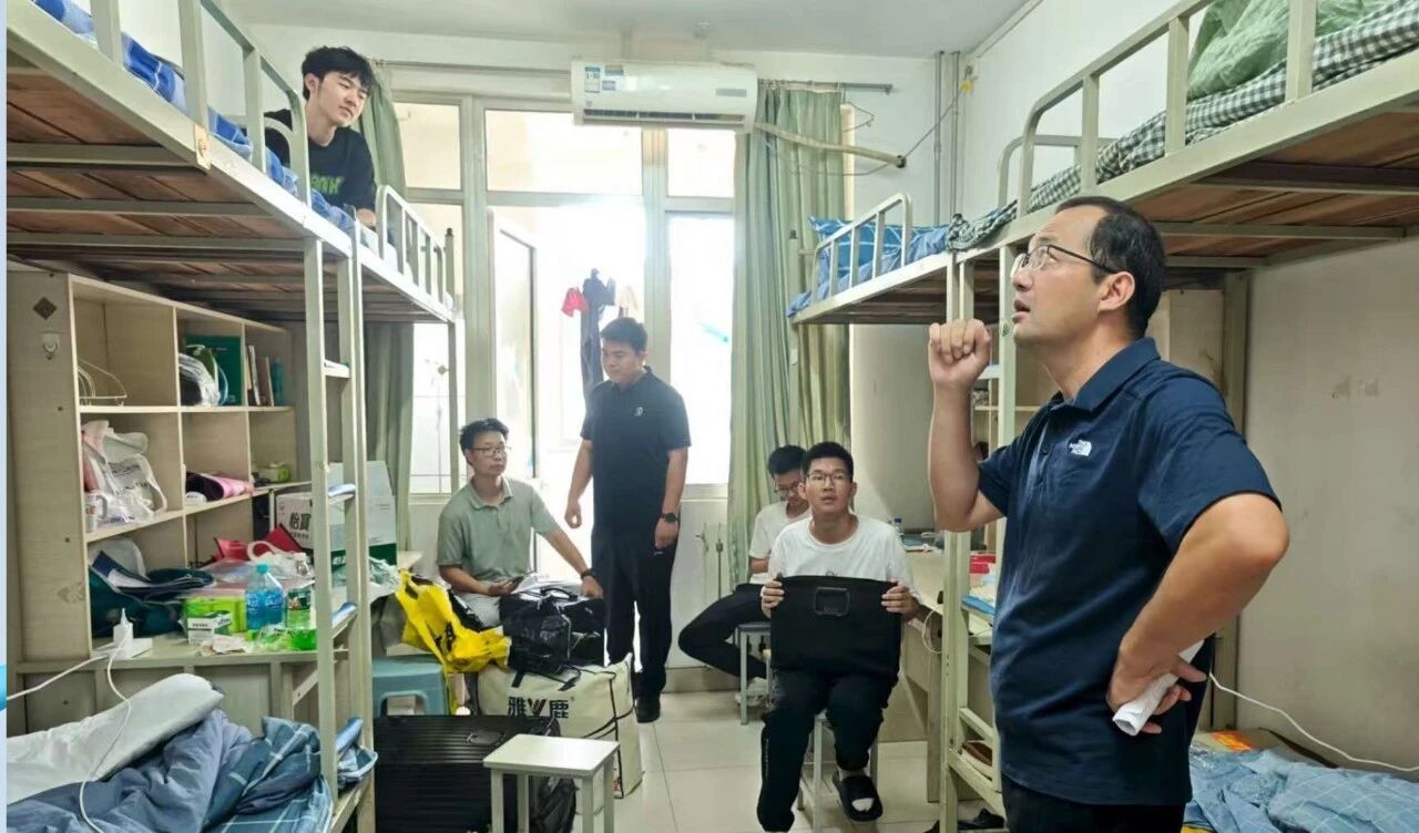 面向新生宿舍,走访组细致核验新换门锁、全新电路及配套设施的完备性,确保新生入学即可享有安全、舒适的住宿环境。在今年报到的新生中有一位同学腿部受了伤,学院领导们细致询问其伤情与恢复状况,查看住宿环境是否便利,叮嘱他注意安全、有困难及时向学院反映,并嘱托班助及室友多照应,营造互助氛围。
