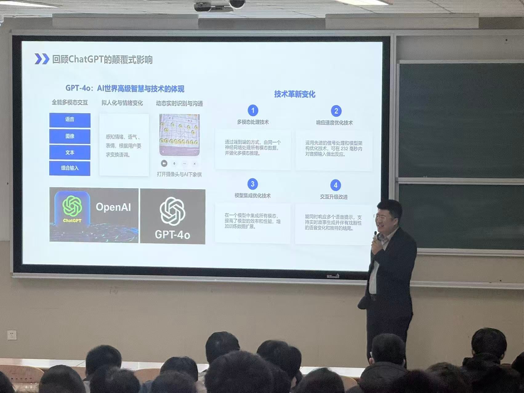 郑飞还从成本与效能角度,深入剖析了DeepSeek与国外同类产品的竞争优势,并展望了自动化向智能化转型的必然趋势。他提出,未来“自动化”专业将逐步向“智能化”方向演进,鼓励同学们主动拥抱技术变革,夯实专业基础,勇担时代使命。