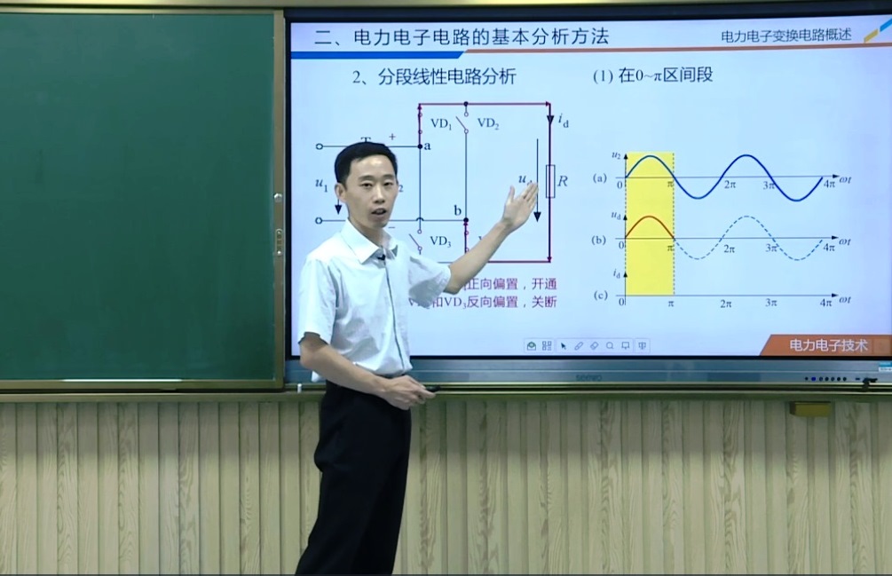 由于新冠疫情影响,本次比赛采取参赛教师在各自高校讲课、面向评委和社会公众同步直播的方式。2020年8月1日决赛当天,丁广乾老师被分到讲20个节段中的第1个绪论中的教学内容,尽管从内容上不容易讲出彩,但丁老师还是很快整理好心情,自信的走上了比赛场地,只因这个课件从方案设计,到素材搜集,再到课件制作耗时半个月打磨成型。比赛中,丁老师用工程的严密性与逻辑性精彩呈现了整个教学过程:从身边的实际工程导入,介绍了电力电子变换电路分类的基本知识;以前序课程的学过的电路为例,讲解新学课程中要用到的基本分析方法,讲出了深度;最后从课程体系到实际应用介绍了本节课所学知识的应用,讲出了广度。比赛中的教学内容20分钟和教学反思2分钟两个环节,都达到时间一秒不差,顺利完成比赛,赢得专家评委们一致好评。最终,丁广乾老师以标准分93.36的总成绩获得工科组一等奖。