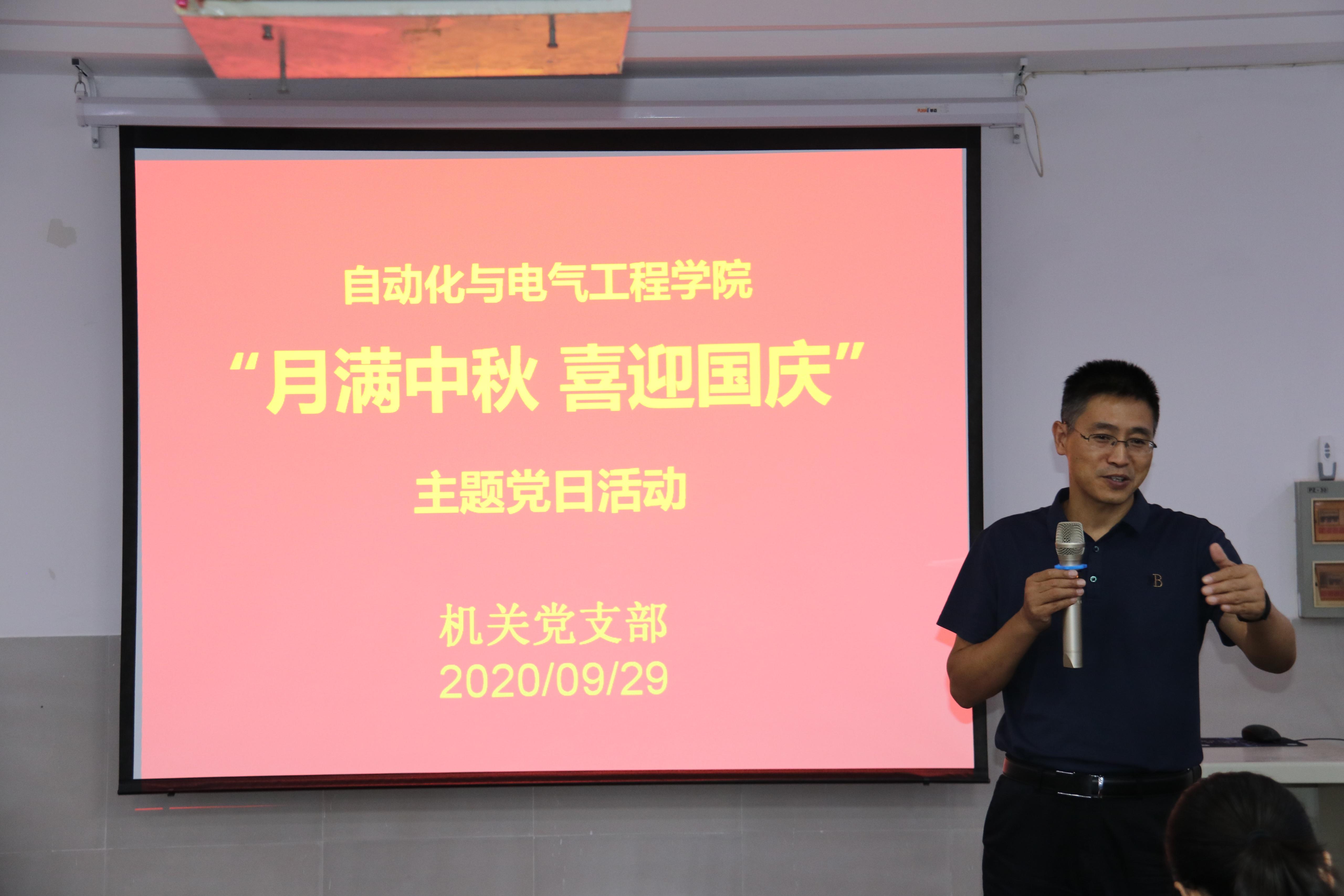 在中秋节和国庆节来临之际,为了让同学们感受到学校和学院领导和老师们的关心和祝福,9月29日下午,学院机关党支部举办“月满中秋 喜迎国庆”主题党日活动,支部党员为新生们分发中秋礼物。参加此次活动的老师有学院党委书记夏卫东,学院副书记、副院长陈春锋,机关党支部党员王英华、刘宁宁。