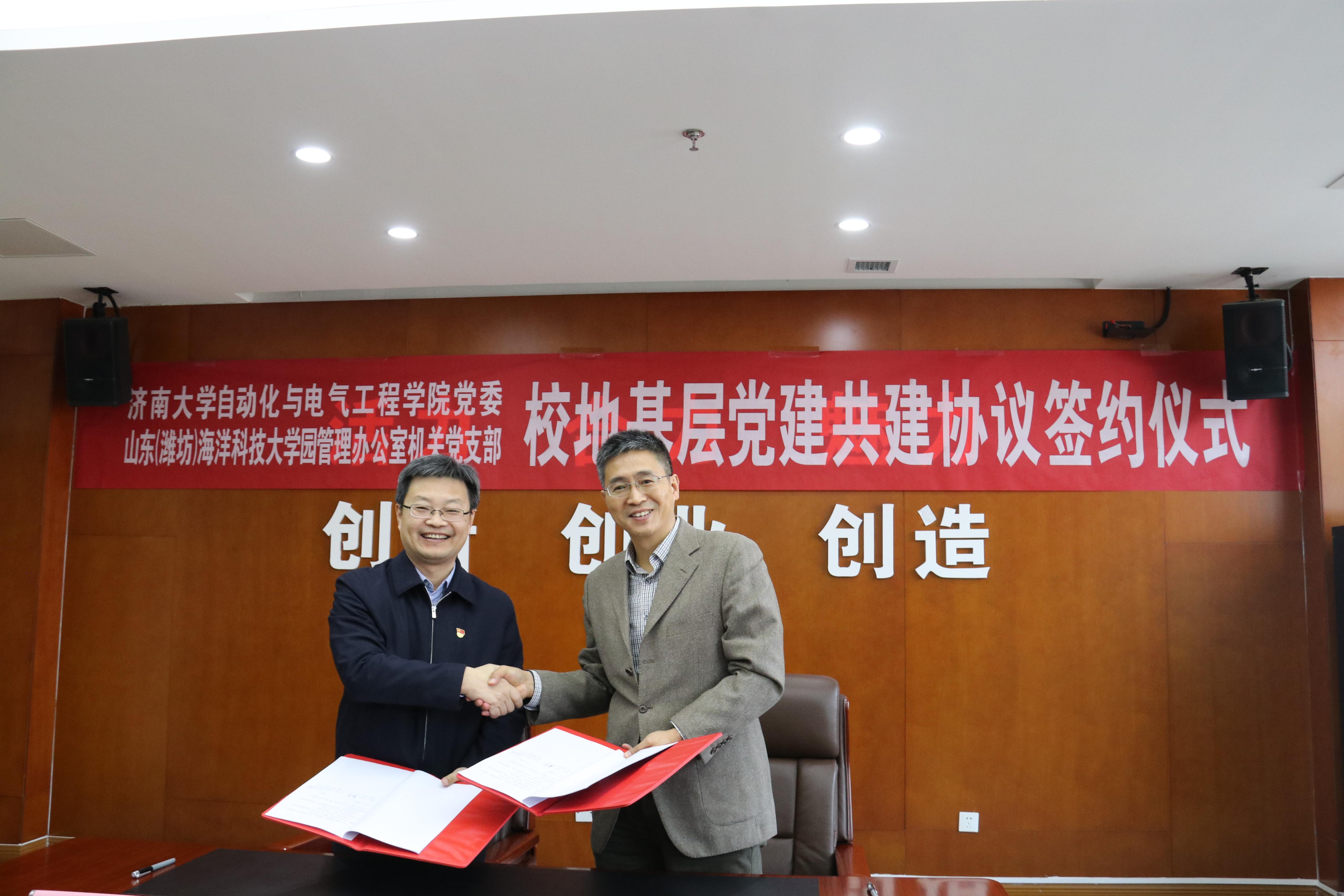 党委、山东(潍坊)海洋科技大学园管理办公室机关党支部签署了校地党建共建协议。签约仪式后,双方参会人员针对此次校地党建共建内容进行了座谈交流。双方就健全完善党建工作模式、开展党建共建活动、制定2021年共建计划方案等达成一致意见。