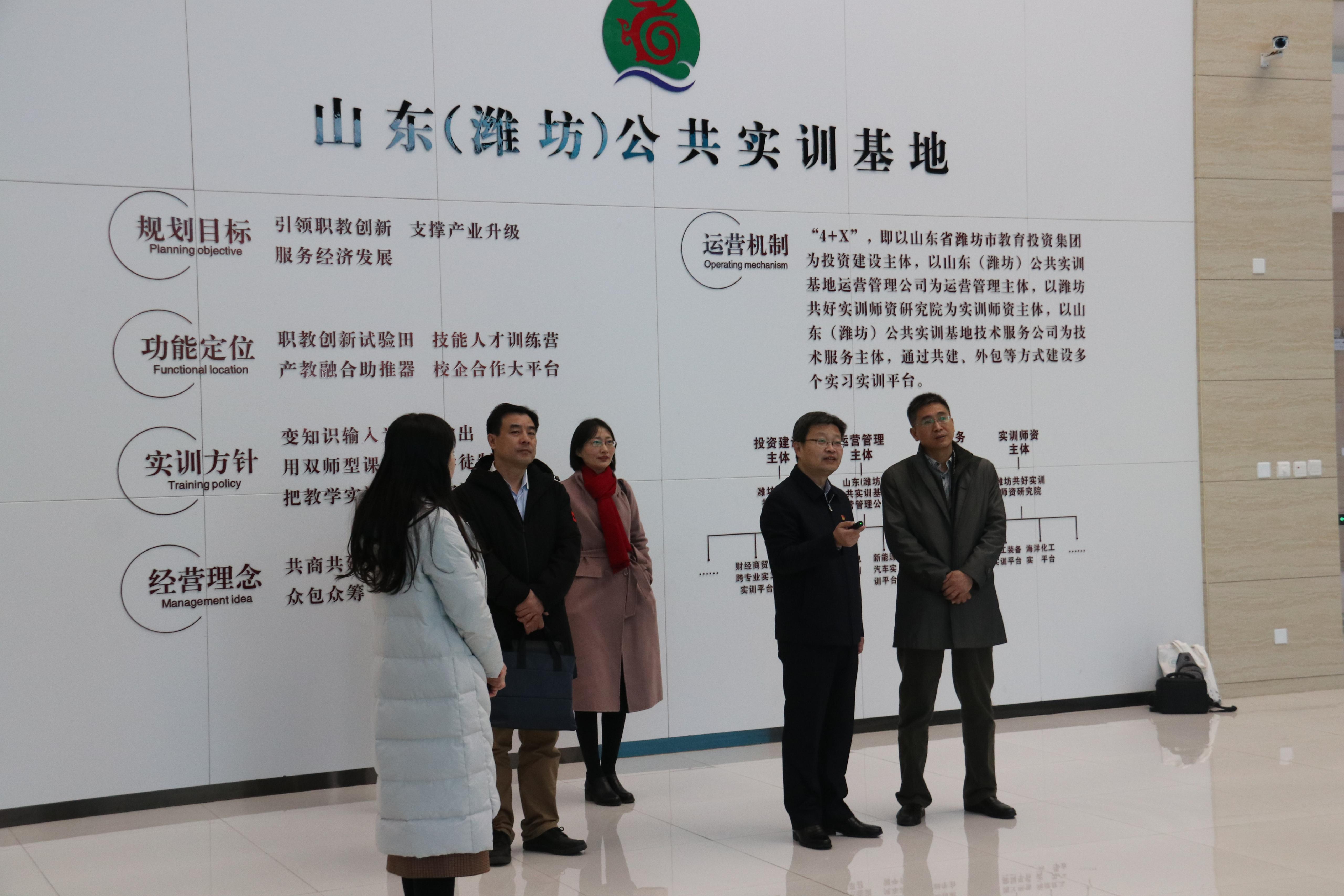 随后,张勇副校长一行,在大学管理办公室工作人员陪同下,参观了大学园区和海泰产业园,重点体验参观了山东(潍坊)公共实训基地实训平台,详细了解了实训基地发展、项目建设的相关情况。