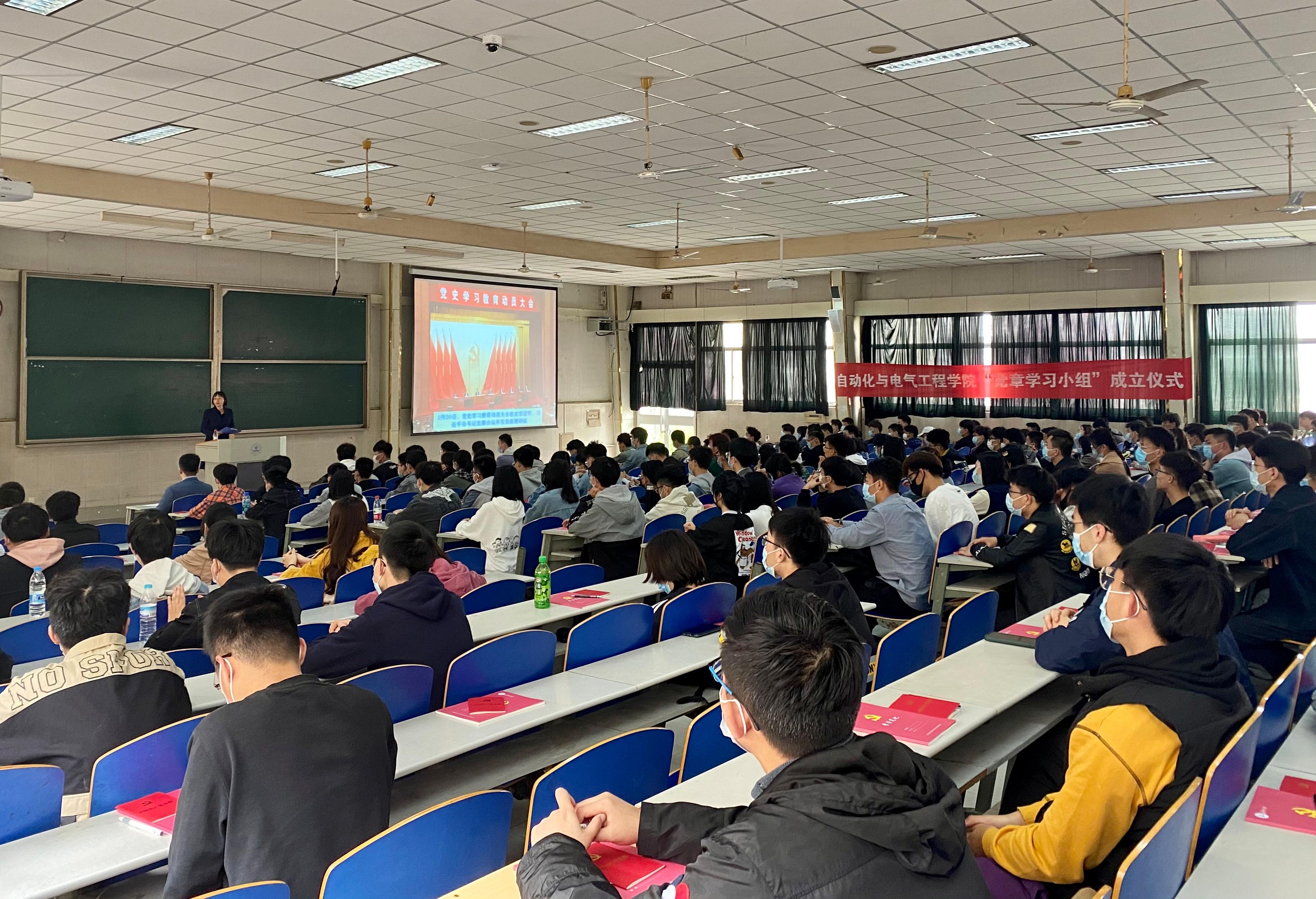 关于在学生班级中成立“党章学习小组”或“党小组”的实施方案》,并进行了解读,介绍了学院各班级成立“党章学习小组”或“党小组”的原则、学习时间、活动形式等具体内容。“党章学习小组”组长代表、电自1902班谭志浩同学进行发言,他表示,青年人应当“志当存高远”,一个人的理想志愿只有同国家的前途、民族的命运相结合才有价值,一个人的信念追求只有同社会的需要和人民的利益相一致才有意义。他认为要让同学们学好党章、党史和党的基本理论基本知识,各班要进一步细化学习方案,既要有硬指标,也要有软办法。不仅要严格学原文、读原著,也要积极组织开展诸如抄写党章、党章党史知识竞赛、学习党章党史心得体会座谈、参加社会实践等形式多样的活动,切实提升学习效果。