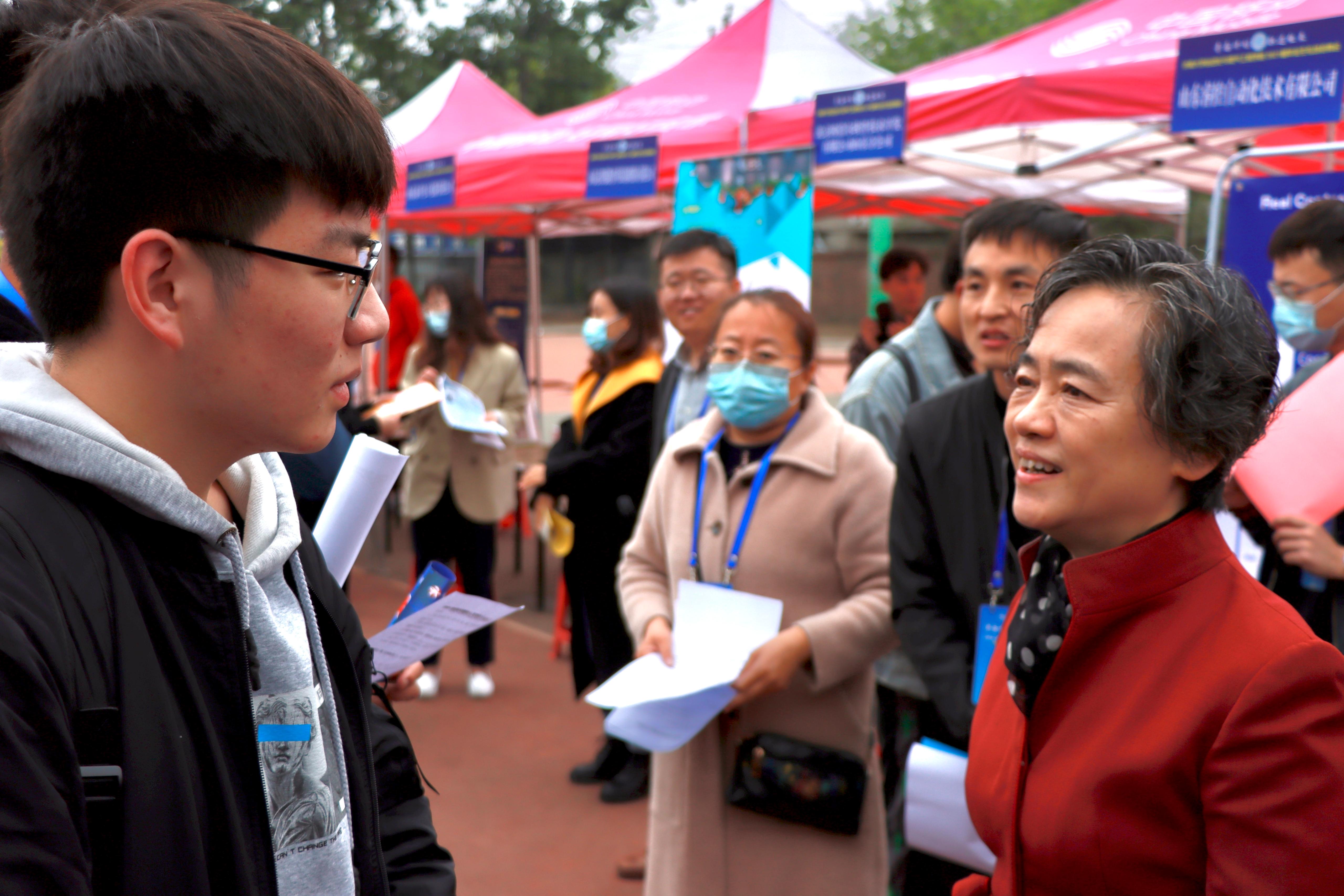 招聘会上,张硕秋副书记认真听取和询问了学院2021届毕业生整体情况及就业工作安排,并与招聘单位行了深入交流,从企业规模、成就、发展前景、工作环境等方面了解企业的现状与优势。招聘现场,张硕秋书记一行与毕业生亲切交谈,详细了解学生就业状况,鼓励同学们树立正确的成才观、职业观和就业观,不断开阔视野,在实践中增长才干,努力成为对国家和社会有用的人才。
