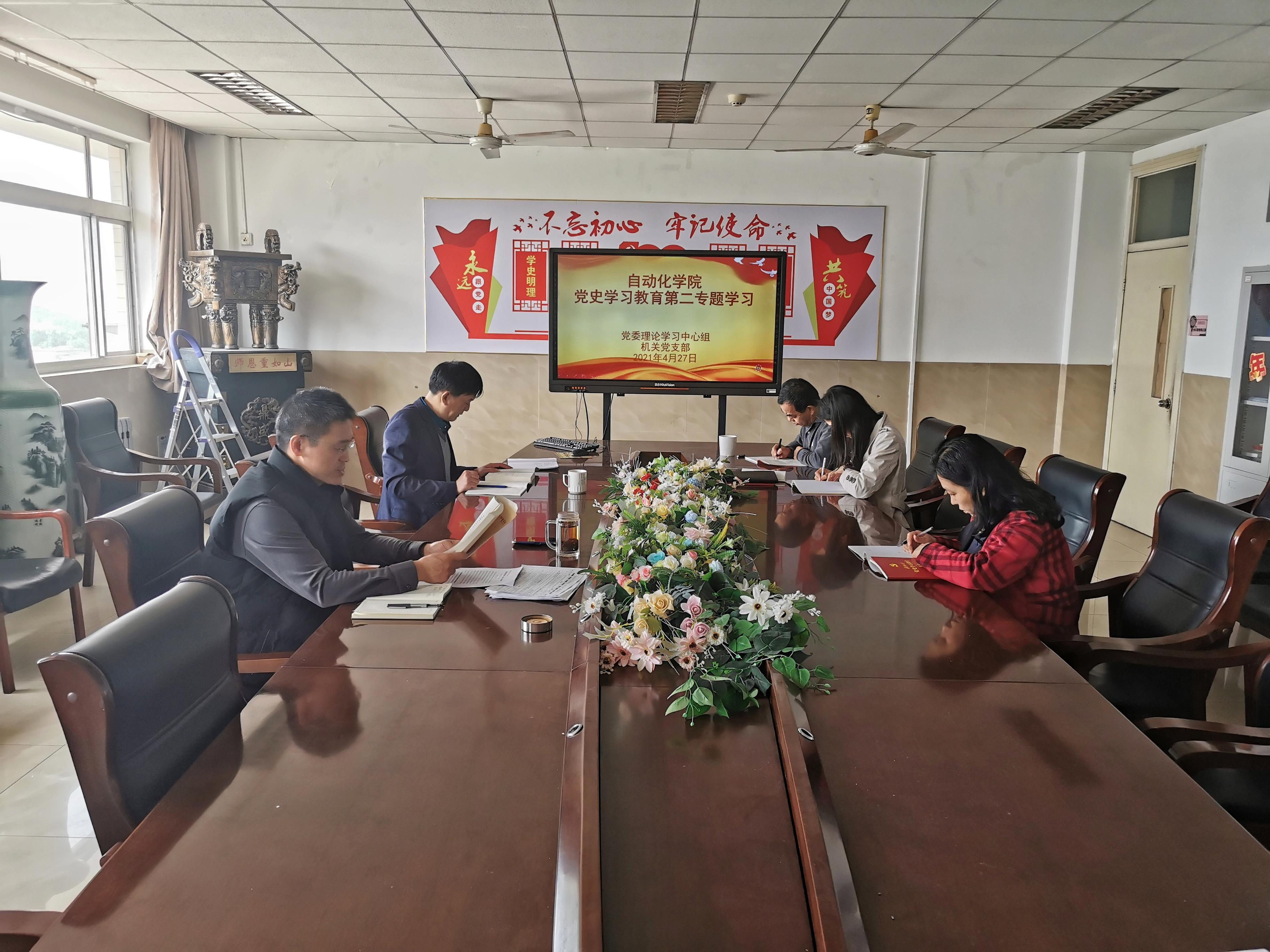4月27日,根据学校党委既定部署要求,学院党委开展党史学习教育第二专题学习活动。活动由学院党委书记夏卫东主持,学院党委理论学习中心组、机关党支部党员共同参加了学习活动。