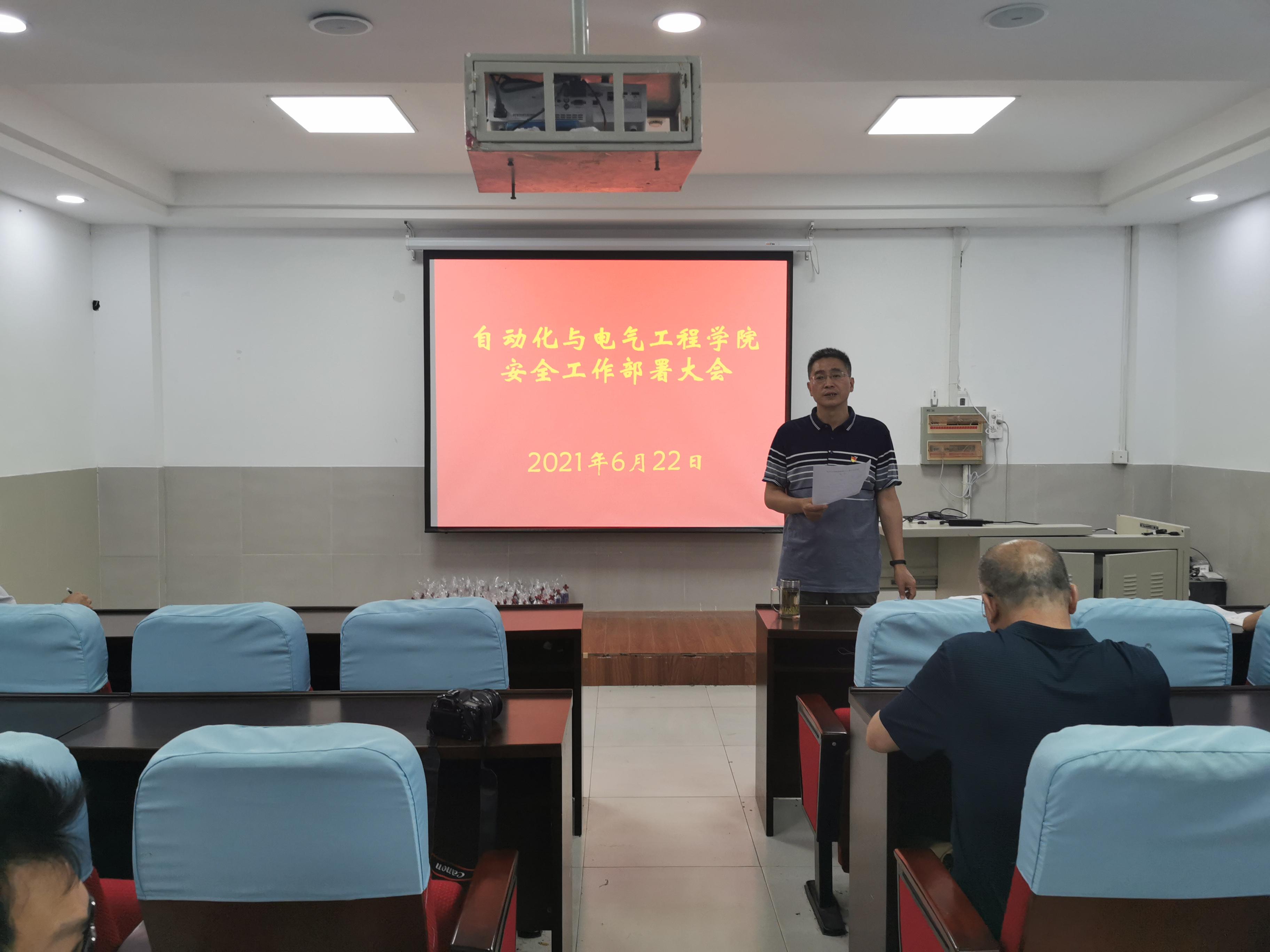 会议要求,学院领导、各系、各教研室和各部门单位负责人要把安全工作放在心上,抓在手里,扛在肩上,严格按照安全责任分工和有关安全工作管理制度,责任到人,落实到位,进一步排查各类安全隐患,做到全覆盖,无死角,确保万无一失,以优异成绩向党的百年华诞献礼。