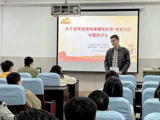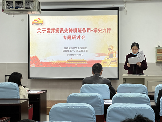 研究生党支部开展了关于发挥党员先锋模范作用的专题研讨会。出席此次研讨会的有学院党委书记夏卫东、研究生辅导员刘璟以及研究生第一、第二党支部全体党员。