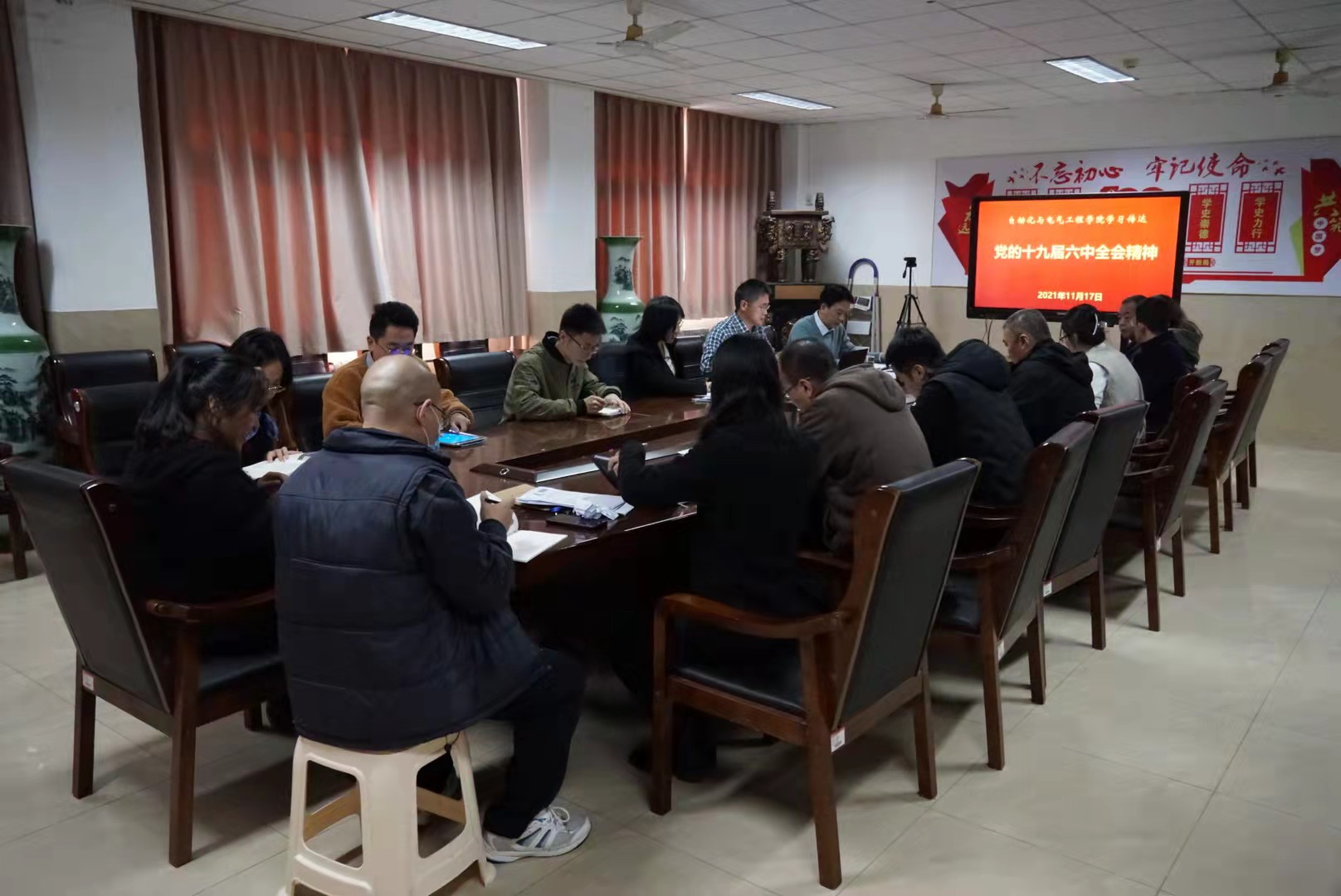 党委理论学习中心组专题学习党的十九届六中全会精神。学院党委理论学习中心组成员、各党支部书记、机关支部党员列席了学习会。