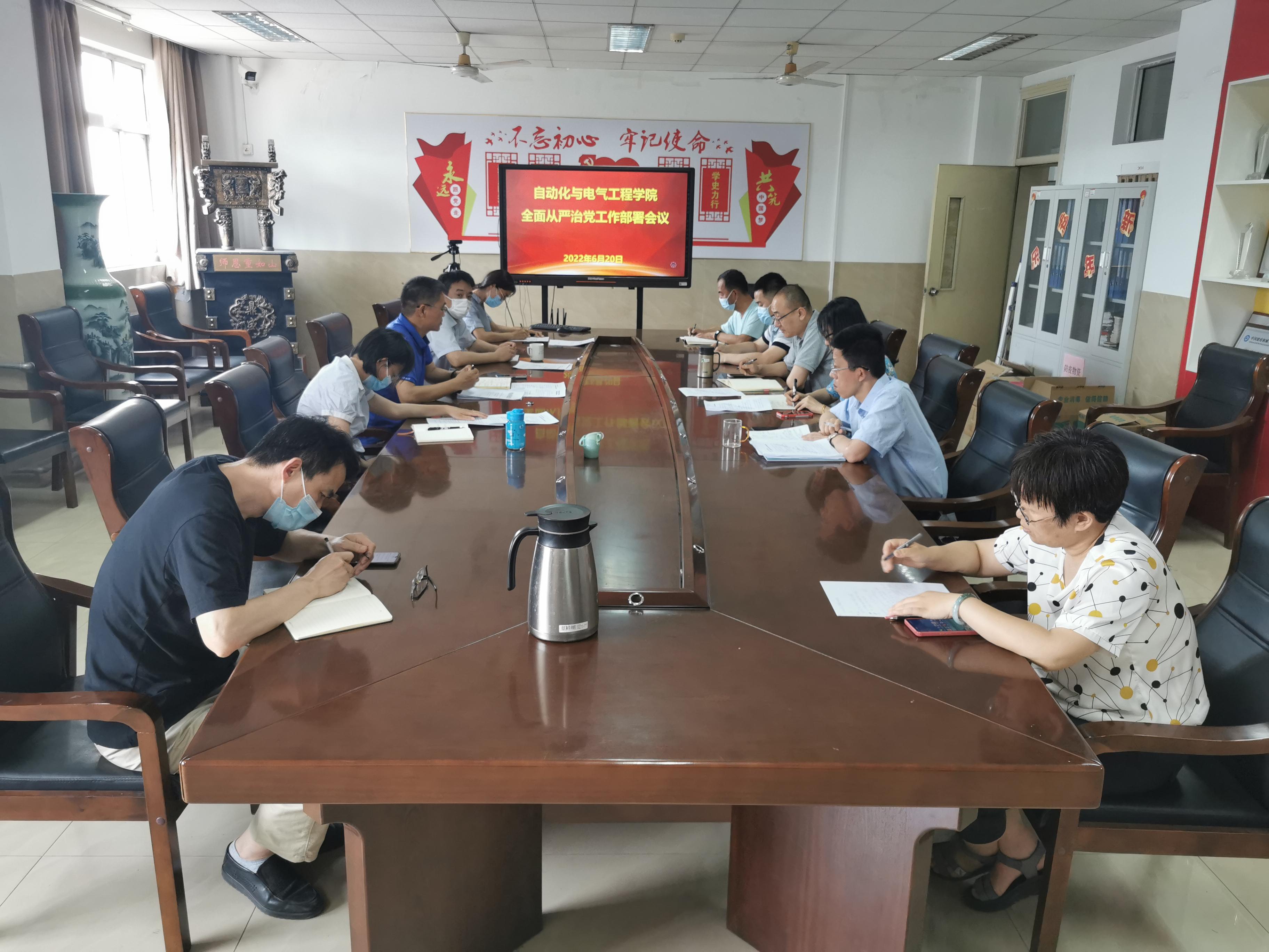 6月20日,自动化与电气工程学院党委召开2022年全面从严治党工作会议。参加会议的有学院党政领导班子成员、全体科级干部、组织员等。