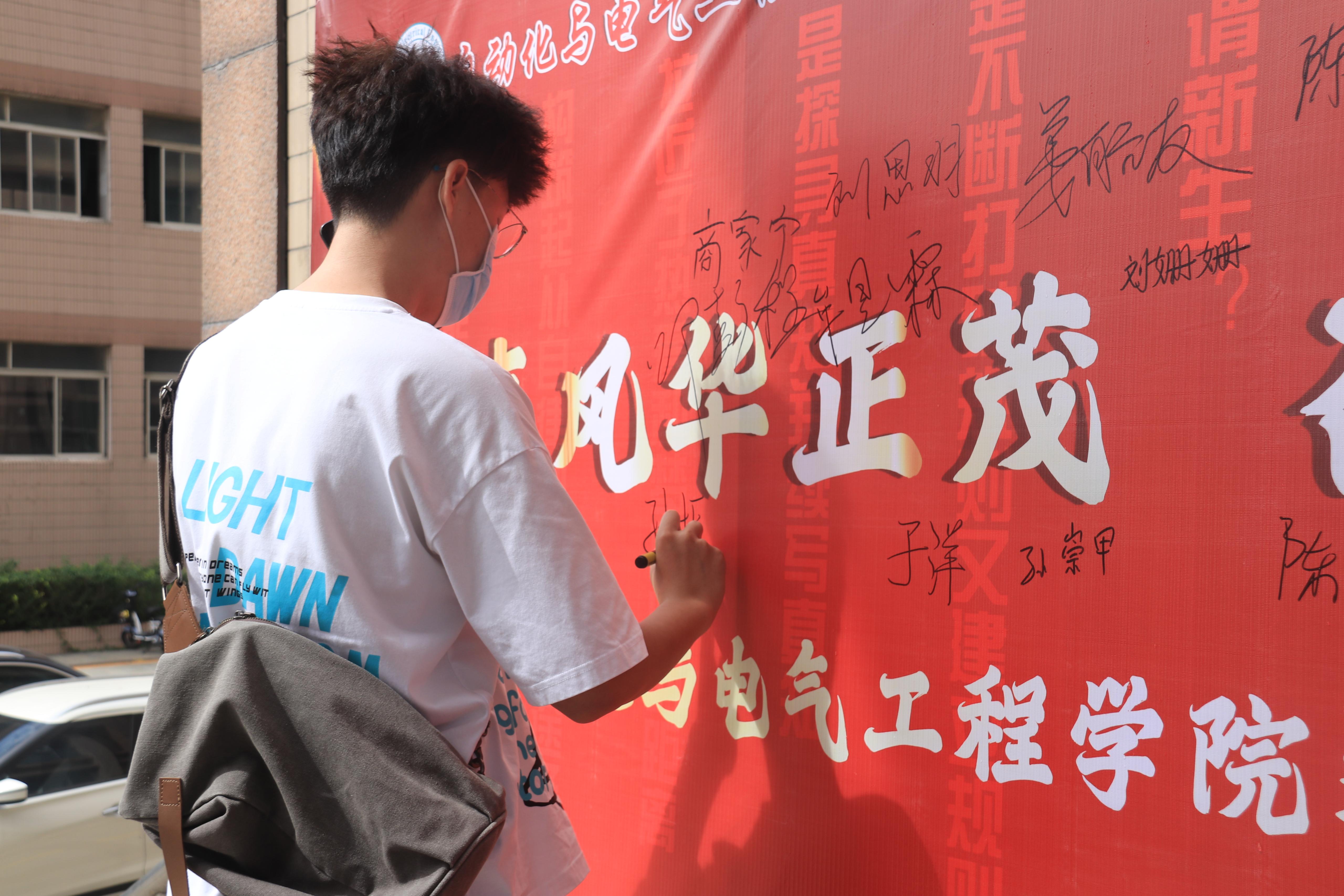 第一教学楼报道点等候,为迎新工作做好充分准备。教学楼楼底分配志愿者为报道新生看护行李,新生在欢迎标牌签下属于自己与济大的第一笔签名。每一位成员分工明确、认真负责,各位新生积极配合完成二维码报道、领取钥匙以及材料登记。