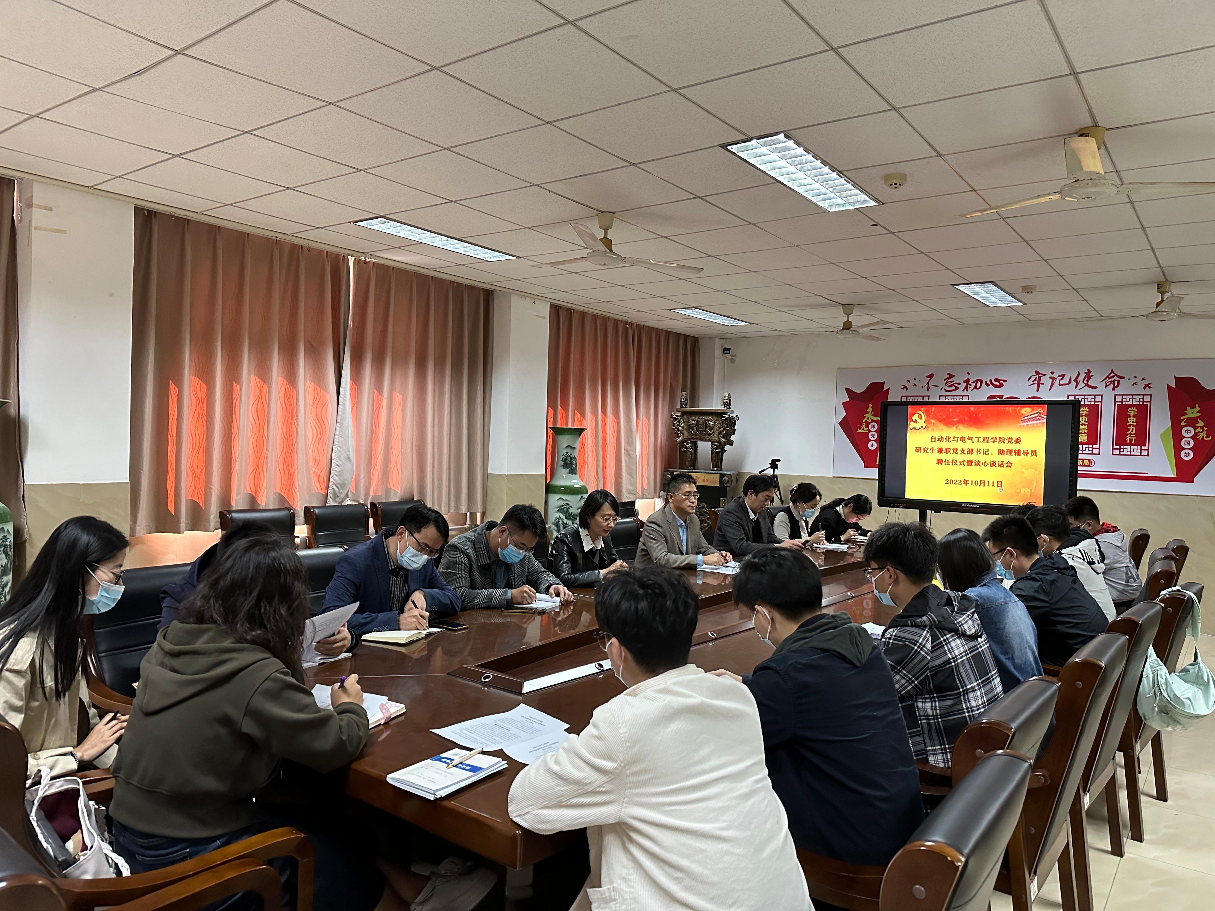 10月11日,学院党委举行了研究生兼职党支部书记和助理辅导员聘任仪式暨谈心谈话会。学院党委领导班子成员、全体学工人员、全体学生党支部书记和10名获聘同学参加了仪式。