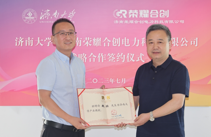 与济南荣耀合创电力科技有限公司牵手合作,在人才培养、科学研究、支部共建、捐资助学助教等方面共同发力,是落实党的二十大精神的新行动,更是新时代校企合作的新成果,开启了我们两家合作的新阶段。特别是,济南荣耀合创电力科技有限公司捐赠25万元设立“荣耀奖教基金”,体现了公司厚重的社会担当、深厚的教育情怀。定会激励青年学子奋发进取、成长成才,鼓舞教职员工爱岗敬业、立德树人。学校学院将强化校企合作,充分发挥人才智力优势,为企业发展、为地方经济社会发展作出更大努力。