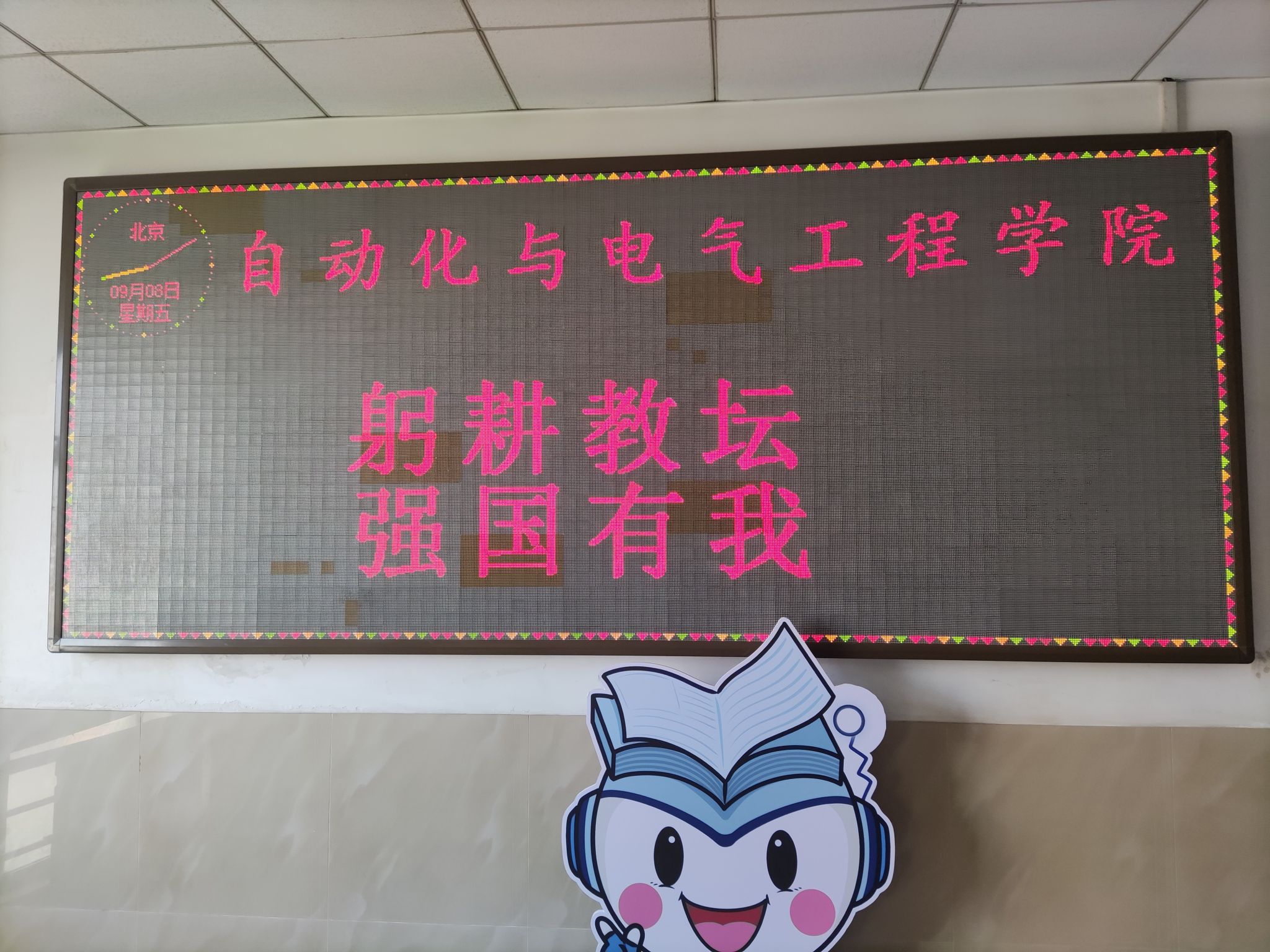 弘扬尊师重教,共兴尊师风尚。“躬耕教坛,强国有我”“教师节快乐!”“老师,您辛苦了!”。教师节期间,学院开展2023年度“为教师亮灯”公益活动,在学院电子显示屏为教师亮灯,滚动播放向教师致敬的视频、文字和图片,营造浓厚节日氛围,课堂上,同学们起立向老师致敬,一句“老师,您辛苦了,教师节快乐!”表达对教师的崇高敬意和诚挚祝福。弘扬优秀尊师文化,深化社会大众对教师是“太阳底下最崇高的职业”的形象认知,让尊师重教在全院深入人心、蔚然成风。