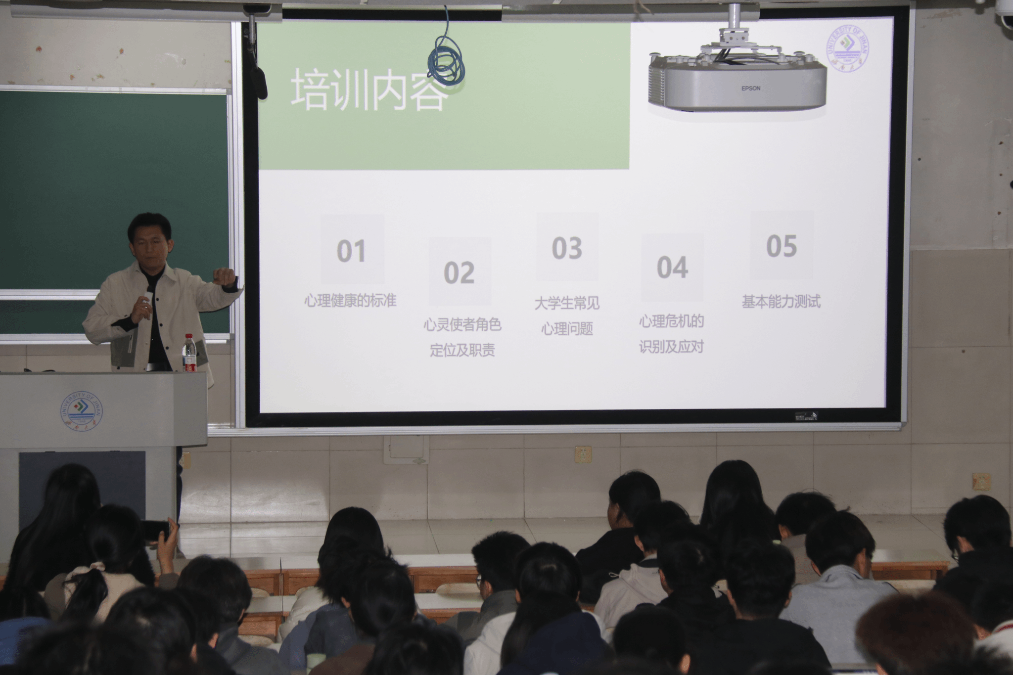 特邀学校心理指导中心李传晓老师举办了“心青年,心成长”心理健康培训活动。本次培训活动旨在进一步发挥学校四级心理健康网络的作用,切实提高心灵使者、心灵联络员及主要学生干部的心理健康素养和朋辈帮扶能力,帮助同学们缓解压力,提升心理健康水平。
