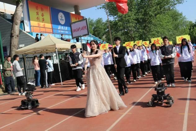 的学生方队身着统一的白色运动服,以整齐划一的步伐和响亮的口号,展现出蓬勃朝气。队伍前方,两辆由学院自主研发的智能小车缓缓行进,精准跟随方队节奏,将专业特色与科技魅力展现得淋漓尽致。