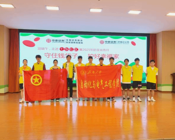 电气2302班团支部走进济南市市中区七东社区,联合中泰证券开展防范非法集资宣传活动,并前往中泰证券实践基地学习金融知识。