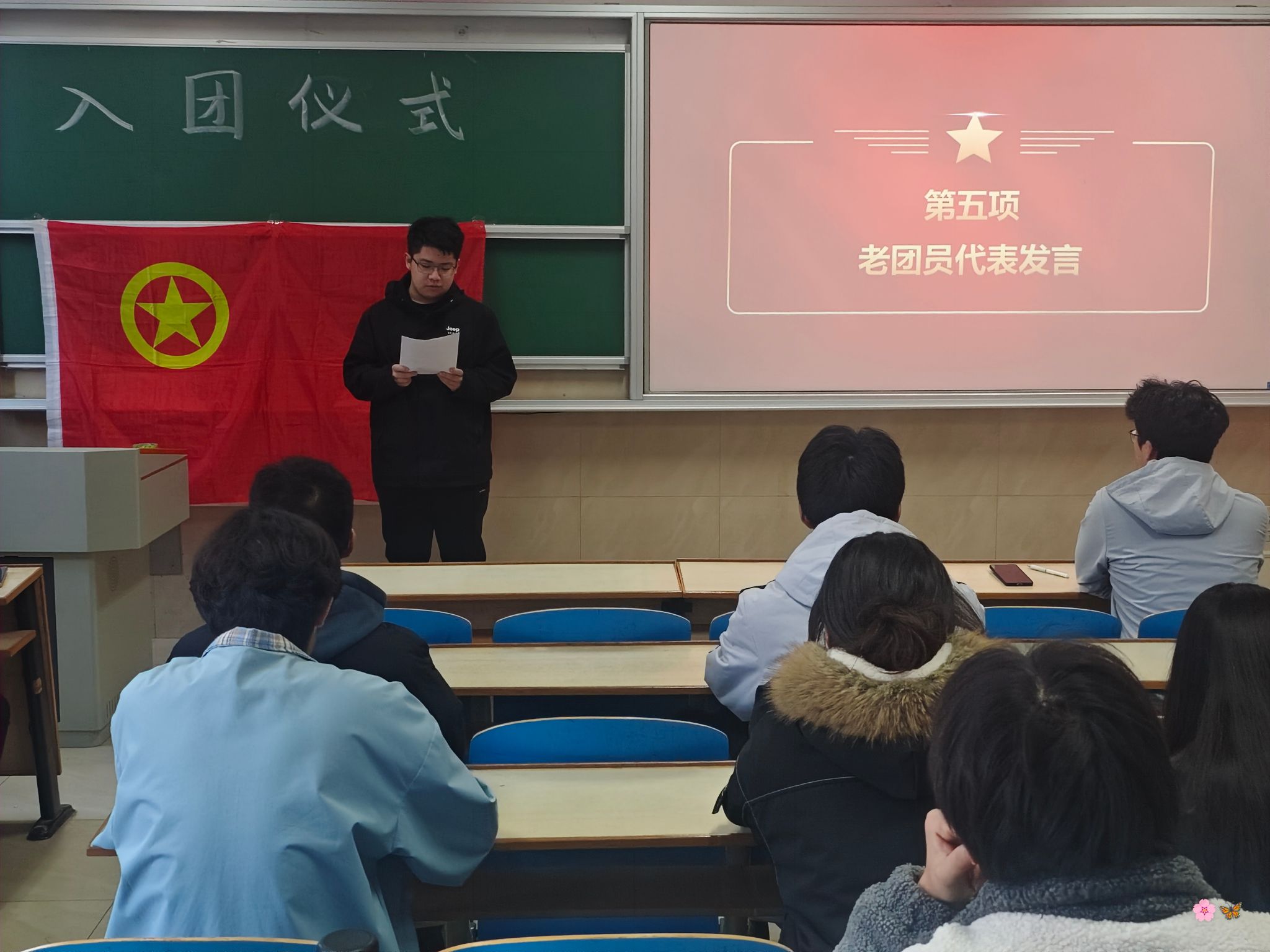 随后,主持人宣读新团员名单,老团员为新团员发放并佩戴团徽。新团员代表杨柳带领全体新团员面向团旗庄严宣誓,铿锵的誓言既是对“一二·九”先辈的致敬,更是对青春使命的承诺。