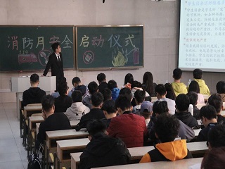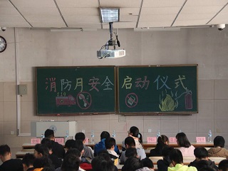 校歌活跃气氛。随着主持人的登场,活动正式开始。首先,青协副部崔越同学普及了火灾危害和学校火灾案例以及宿舍火灾起因和预防措施等相关知识,强调了消防安全的重要性和学校开展消防安全的必要性。随后,主持人播放了有关消防安全的视频,同学们深刻感受到了火灾的无情和消防的重要性。视频播放结束后由老师代表讲话,再次强调防范同学们面对火灾该如何应对。之后,活动负责人肖键大体阐述了消防安全月的活动规划,将举行消防知识竞赛和联谊的消防知识竞赛以及消防作品的征集工作。活动结束后,各部门主要负责人离场,其余活动参与人员在引导员的带领下有序到教室后面的横幅上签字,以此留念。