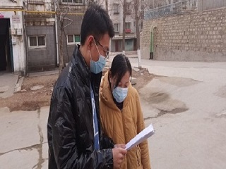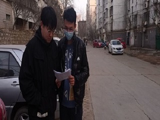“电亮爱心”安全行社会实践队的郑光赢队员于2月21日在山东省济南市钢城区湖滨园开展关于防火的调研工作。