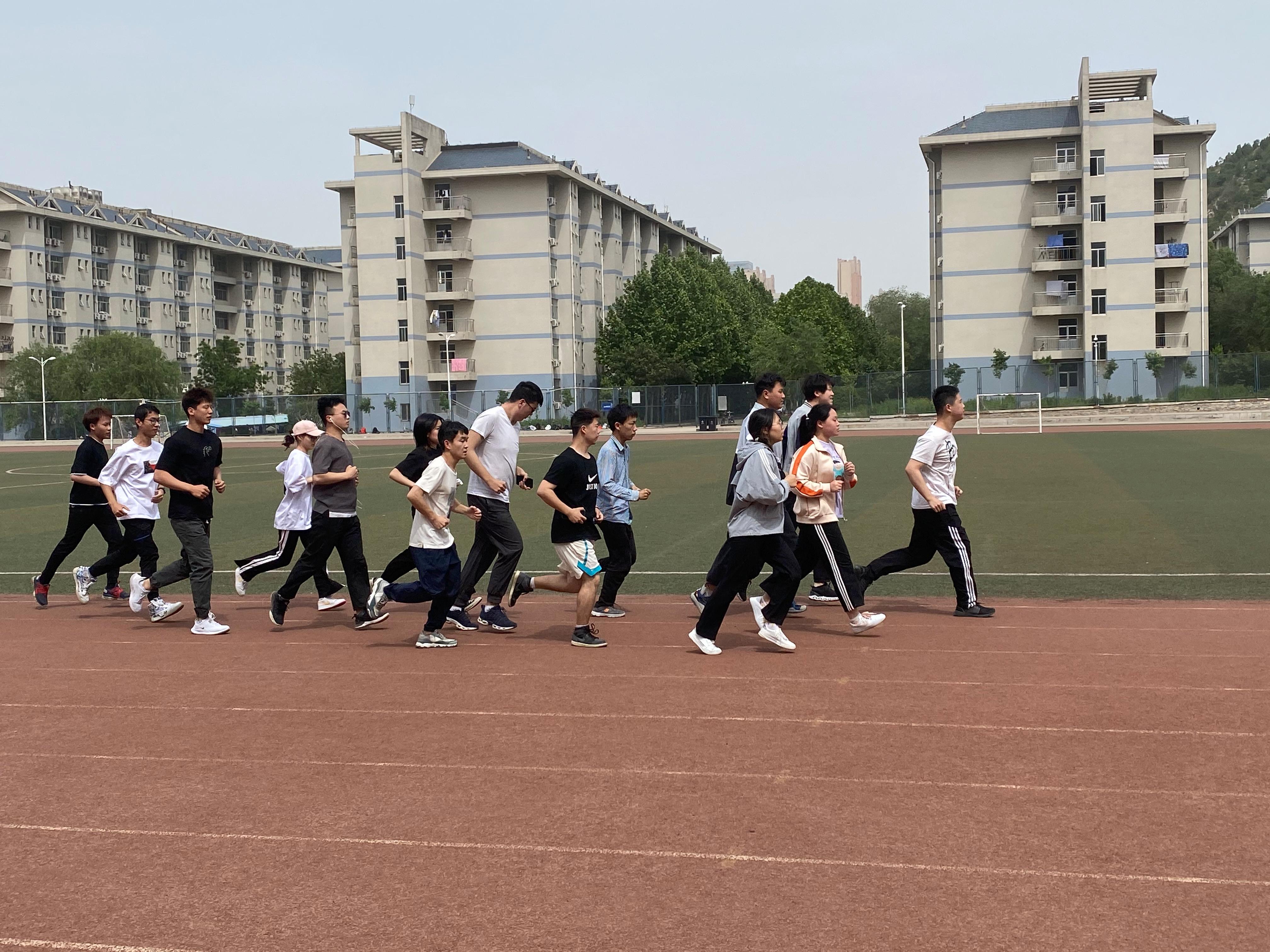 迎春跑的校内活动起点设置在上午8:00开始,参加活动的同学们来南苑操场报到、热身,随即开始3km的奔跑活动,凝聚基层组织活力,共同庆祝建党百年。