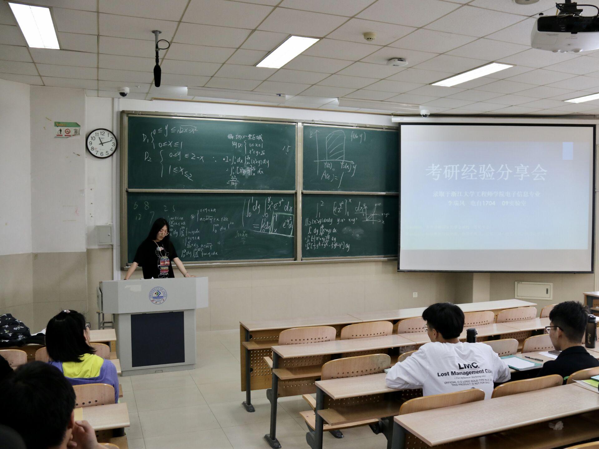 李瑞凤同学现被浙江大学录取,她本科期间曾多次获得国家奖学金和校一等奖学金,积极参加各种科创竞赛。她以生动的语言向自动化学院的同学们介绍自动化与电网专业的发展前景,鼓励大家一定要高效学习,找到适合自己的学习方法。王炀同学现成功考研到江南大学,他通过介绍自己的学习经历,强调了持续学习的重要性,讲解了自己上课做笔记等学习方法,并在专业分流和考研方面讲述了自己的一些见解。他针对同学们的问题给予建议,鼓励同学们挑战自己,同时要养成课前预习,课后复习等好的学习习惯可以使自己受益终生。最后他向同学们介绍了参与各种竞赛对考研的优势,使得大家对今后学习发展有了更深的理解和规划。