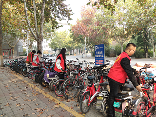 2021级研究生在十教进行了“青春搭把手,共创文明校园”的摆放电车的志愿者活动。