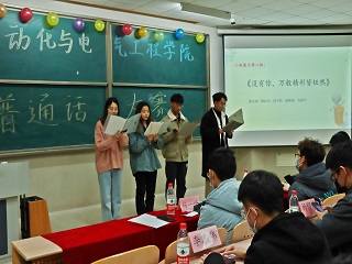 语言是人与人交流的基础。这场比赛不仅让学生体会到了讲普通话的重要性,还可以表现出自动化学院学生敢于展现自己、挑战自己的风采。普通话促进了中国各地区的朋友交流合作,增强了同胞们的团结感,打破了地域隔阂,具有很大的意义。讲好普通话也是我们爱国的标志。当聆听《请党放心,强国有我》时,同学激情的演讲深深的打动了我,展现了学院学生的爱党、爱国精神。讲好普通话也可以促进交流,产生情感的共鸣。当聆听《繁星》时,我仿佛融入到了诗的意境中。普通话大赛丰富了学生的课外生活,让同学们感受到了普通话的魅力。同学们朗读绘声绘色,充满情感,标准流利的普通话打动了观众和评委,展现了自动化学院学生的魅力和风采。
