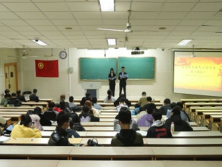 第四次新生团干部培训在第二教学楼205教室开展。培训围绕党的宗旨、廉政以及理想信念展开,在兼顾防疫要求的同时采取线下形式开展,21级各班团干部均佩戴口罩参加。