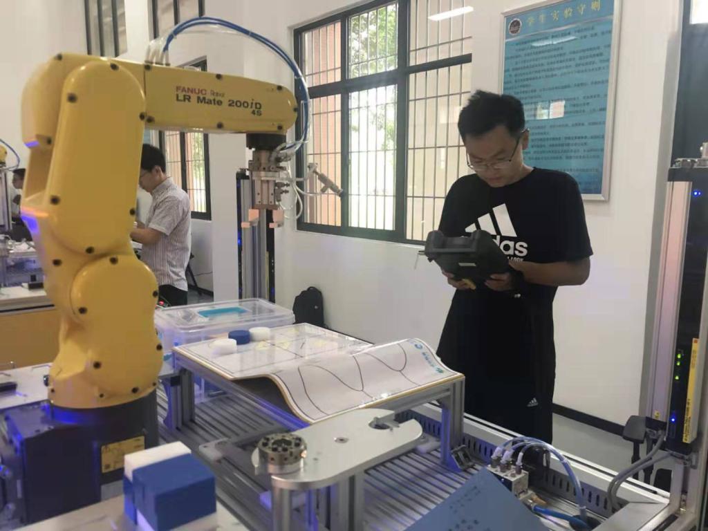 本次培训共10天,地点在华夏学院的“互联网+中国制造 2025”产教融合创新基地,培训采取封闭式、专题讨论、理论与实操相结合等方式,由全球著名机器人制造先进企业FANUC资深专家讲解现场编程和离线编程仿真等内容。通过这次培训,91论坛