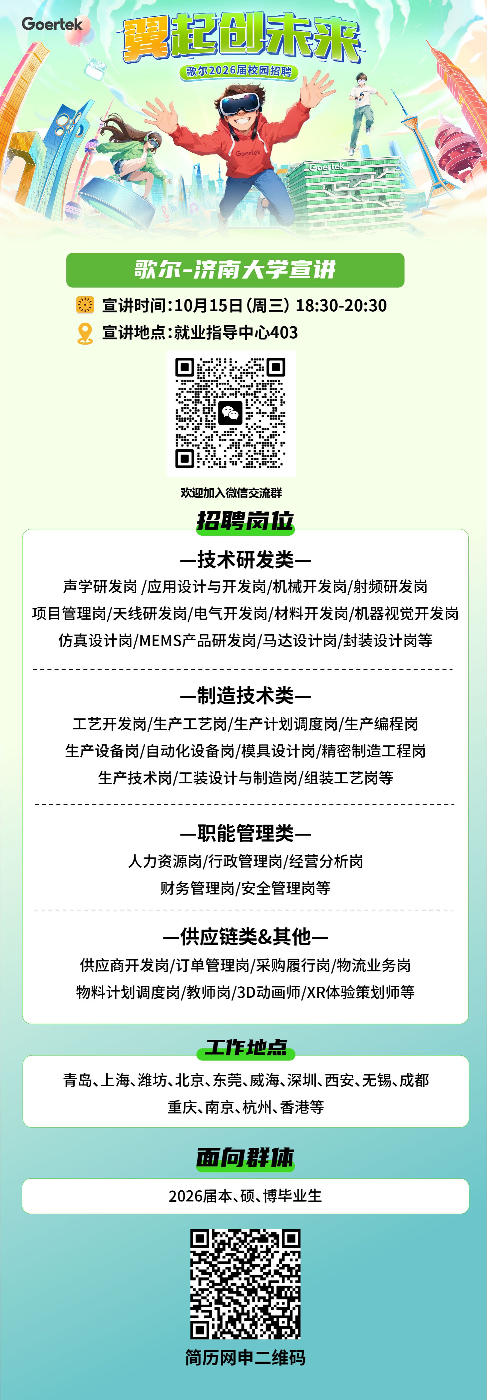 歌尔每年都来招聘咱的毕业生,请老师们转发宣传,感兴趣的积极参加!