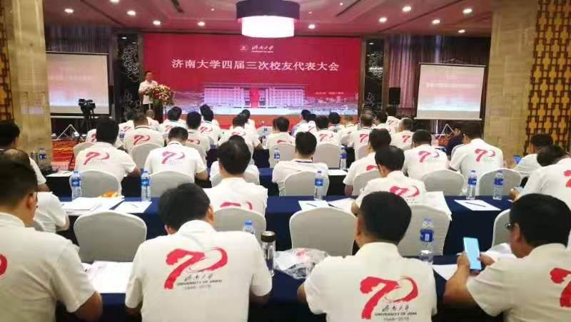 四届三次校友代表大会上致辞,他向校友们介绍了母校70周年校庆的盛况。校庆以来,全校师生员工立足新起点,在广大校友和社会各界的大力支持下,以综合改革和“双一流”建设为抓手,强化内涵建设,扎实推进学校第三次党代会和“十三五”规划确定的目标任务,各项工作均取得了长足发展。长期以来,广大校友以各种方式关心母校发展,以实际行动支持母校建设,在彰显母校办学特色,提高教育教学质量,扩大产学研合作,加速科研成果转化,促进毕业生就业,扩大母校的社会影响等方面发挥了重要作用。母校将永远铭记广大校友的赤诚情怀,永远铭记广大校友做出的突出贡献。希望各地校友会加强与广大校友的联系,促进母校与校友之间的互动往来,使母校真正成为广大校友加强交流的信息港,促进事业发展的助推器;希望各地校友会创新工作载体,拓展工作内容,完善工作机制,推动校友工作扎实深入开展,使广大校友真正成为支持母校建设与发展的中坚力量,成为母校与校友之间的连心桥,为母校的发展和校友工作的开展献计献策,用浓郁的济大情谊将广大海内外校友紧紧团结在一起,汇聚成同心同德、积极进取的“济大力量”。