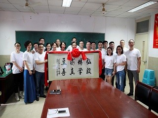 的优良传统,为母校增光添彩。同学们向学院捐赠了著名书法家李骏书写的“弘毅、博学、求真、至善”的校训。